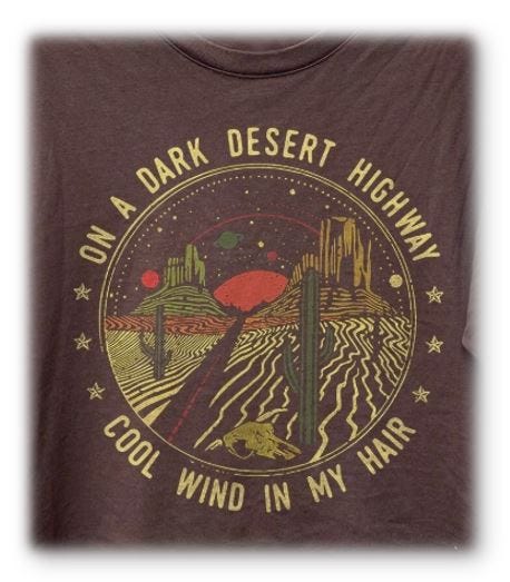 It was triggered, not by hearing the song, but by seeing a tee-shirt with the words, “On a dark desert highway, cool wind in my hair...” on the front. My memory filled in the rest.